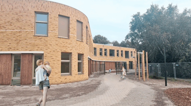 Licht. Ambachtelijk. Groen. Kindvriendelijk. Het is allemaal van toepassing op het nieuwe Kindcentrum Koos Meinderts in het Haagse stadsdeel Loosduinen. Met zijn ronde vormen, groene omgeving en ambachtelijke metselwerk trekt het gebouw meteen de aandacht. Een stijlvolle aanwinst voor de wijk.