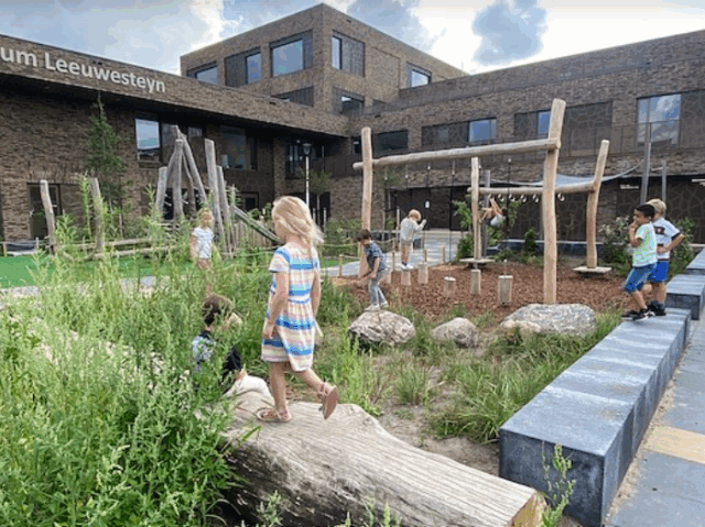 Terugkijkend naar bouwprojecten noemt Joke onder andere het Kindcentrum Leeuwesteyn in Utrecht als voorbeeld waar zij met trots op terug kijkt. “Het project, dat is opgeleverd in de zomer van 2023, betrof een moeilijke bouwopgave op een krappe bouwkavel langs de A2 in Leidsche Rijn. Het was het eerste kindcentrum waar vanuit de visie op samenwerking het begrip integraal echt betekenis kreeg”, licht Joke toe. De visie op leren en ontwikkelen in een doorgaande ontwikkellijn samen met de PCOU-Willibrord vormde daarbij het uitgangspunt voor het ontwerp van BDG architecten (zie kader hieronder).