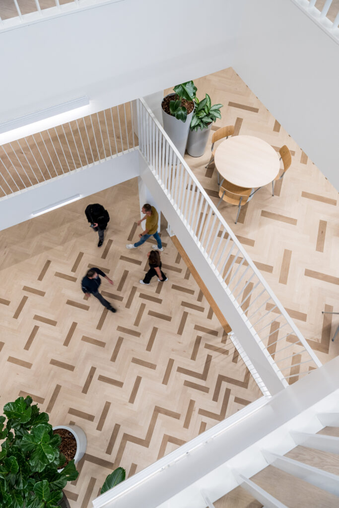 Voor de vloeren koos Firda voor exclusieve samenwerking met Tarkett. Districtsmanager Meindert Bosma vertelt: “Mijn collega Lammert Hettema legde de connectie met facilitair manager Jaap van Bruggen van Firda. Tarkett is totaalleverancier voor alle vloeroplossingen, van hard tot zacht. Van grasveld tot leslokalen tot horeca: overal liggen Tarkett-vloeren. Dit toont de breedte van ons productgamma; zelfs het gras op het voetbalveld is van Tarkett.”