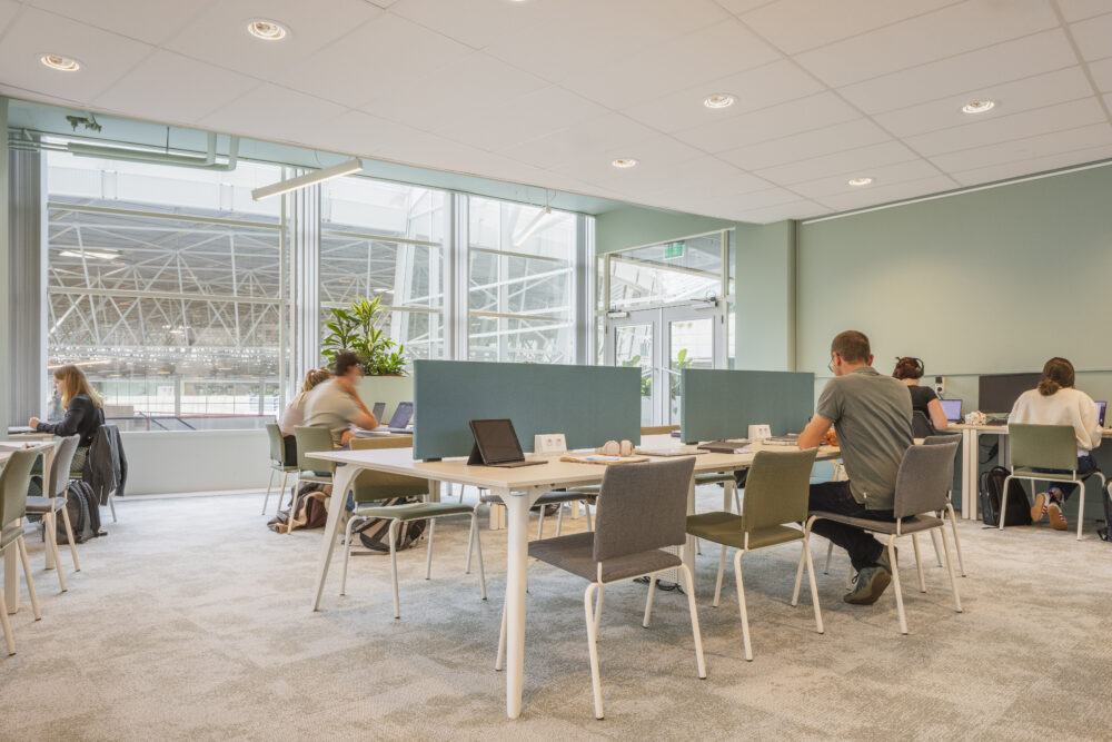 Waar studenten volgens Meike makkelijk meegaan in de toekomstgerichte elementen van de inrichting, moet het personeel soms nog wel wennen aan het werken in open ruimtes. Om feedback van alle gebruikers te verzamelen, zijn zogenaamde ‘love and break-up letters’ geïntroduceerd. Een creatieve manier om op te halen hoe de inrichting onder gebruikers wordt ervaren. Meike: “Wat daarbij tot nu toe het meest naar voren komt, is de fijne groene omgeving en de rust die is gecreëerd met de eenheid in kleuren en materialen. Ook het zitcomfort en de diversiteit van het meubilair wordt als erg prettig ervaren, met name de verschillende opstellingsmogelijkheden scoren goed. Ik kan niet anders zeggen dan dat wij heel enthousiast zijn over het eindresultaat.”